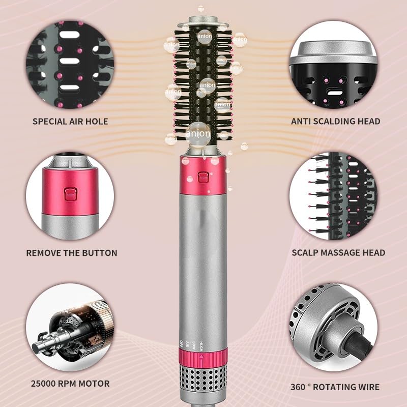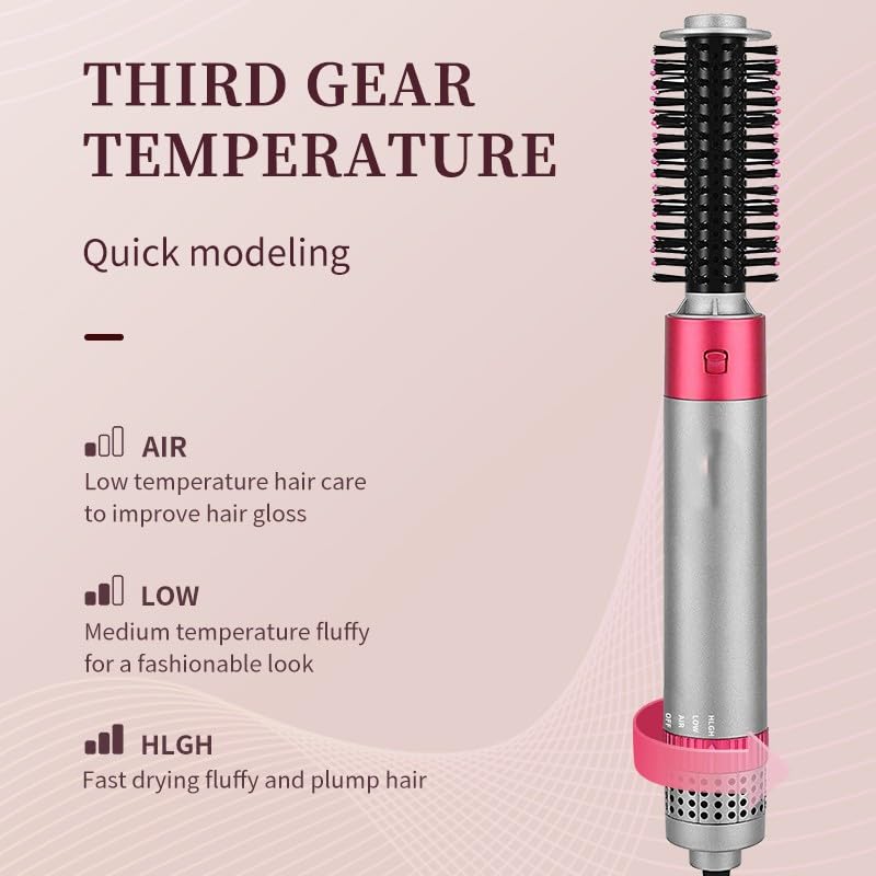 Generic - فرشاة تصفيف الشعر بالهواء الساخن 4 في 1 للتجفيف والتمليس وعمل الويفز ورفع الجذور 3 درجات حرارة سلك دوّار 360 درجة – ضمان 12 شهر