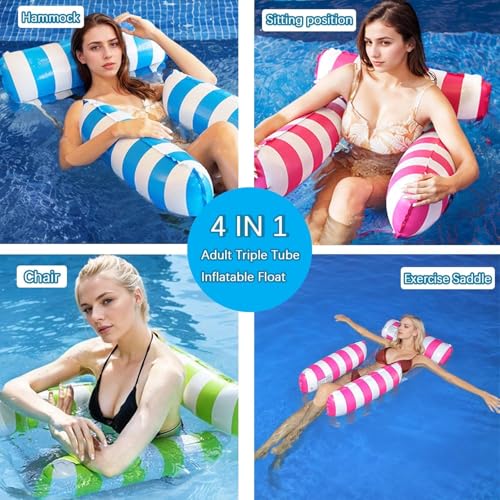 Generic - ارجوحة عائمة قابلة للنفخ 4 في 1 للبالغين - كرسي متعدد الاوضاع من بلاستيك PVC السميك مع مقعد شبكي - كرسي وسرج وارجوحة - للاستخدام في حمام السباحة والشاطئ
