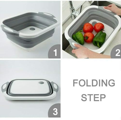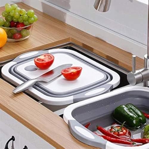Spaceshoop - 4 in 1 Multifunctional Plastic Folding Cutting Board - Foldable Dish Sink - Vegetable - Washing Fruits - Drain Basket with Plug - Collapsible Wash Basin - Serving Tray - By Pegui Bell