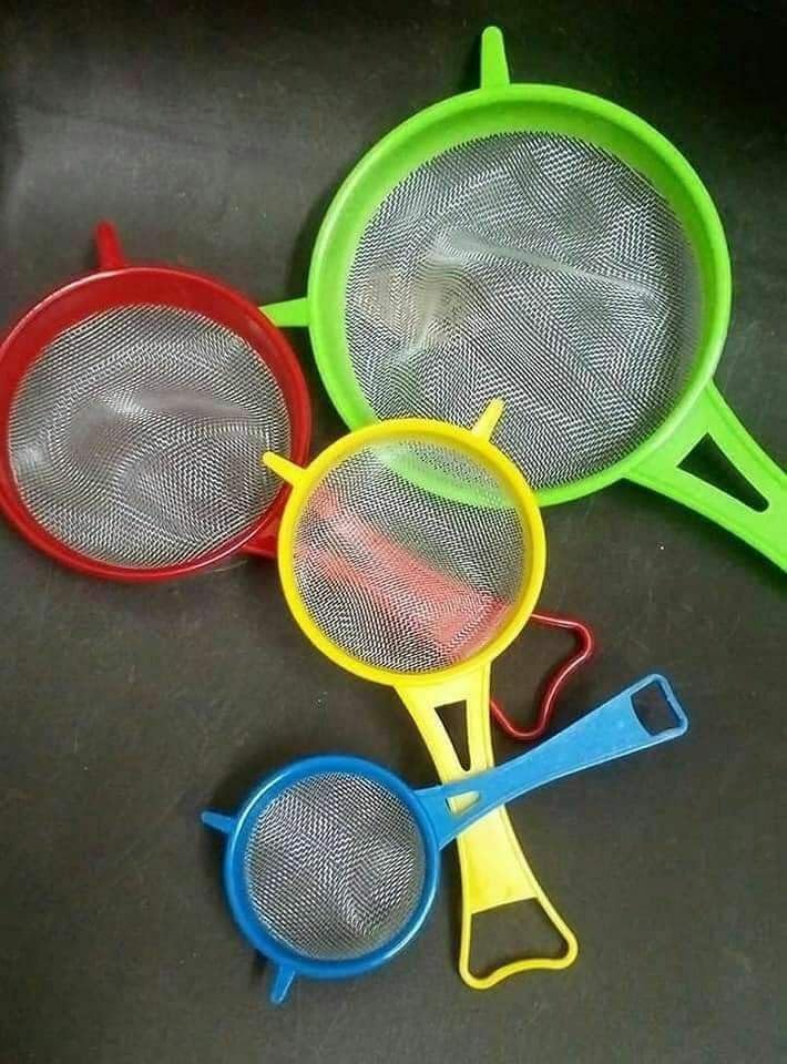 AREXOL - 4 in 1 Plastic Strainers Set for Straining Flour, Juice, Oil, Multiple Sizes Practical Design, Convenient and Lightweight Perfect for Kitchen and Daily Use