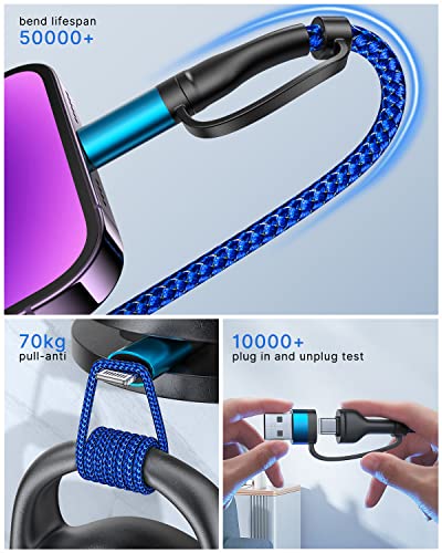 XUDUO - كابل شحن 4 في 1 USB معتمد MFi لايتنينج، بطول 6 أقدام، يدعم USB-C ولايتنينج، سرعة شحن 60 واط، من نايلون مضفر متعدد الاستخدامات. مناسب لشحن ايفون 16، 15 Pro Max، 15 Plus، 14، 13 Pro، iPad وأجهزة سامسونج