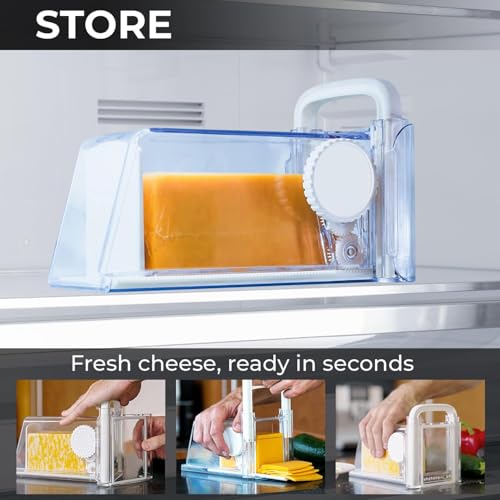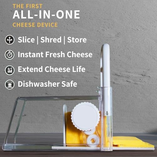 - Versatile & Efficient: This all-in-one kitchen tool not only slices but also stores your cheese in an airtight container, preserving freshness and extending shelf life by up to double the time of traditional methods.