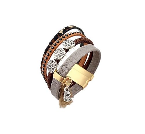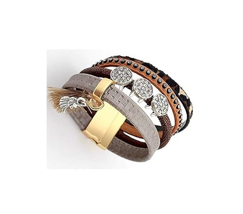 Other - 4 Layers Leather Bracelet Brown with Shiny Stones and Metal Item Number 351 - 3 - 1