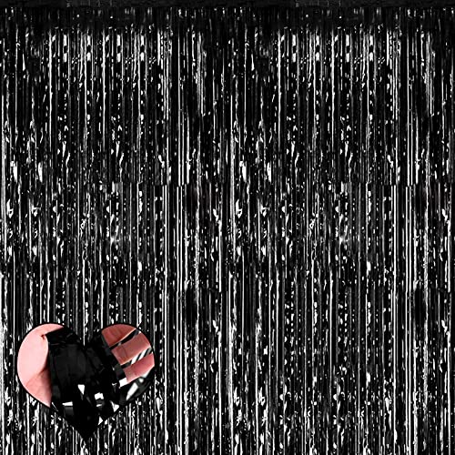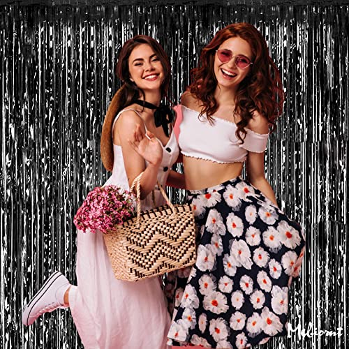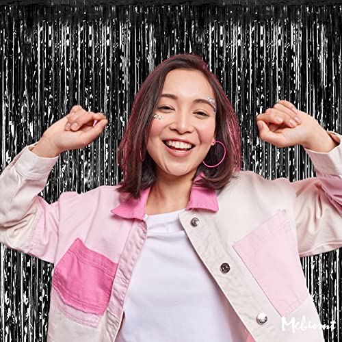 Mebiornt - ستائر شراشيب خلفية باللون الأسود مقاس97 سم × 2.5 م، ستائر بشراشيب من رقائق الفويل لتزيين كشك التصوير وأعياد الميلاد وحفلات الزفاف وحفلات السبوع والهالوين والكريسماس - 4 قطع.