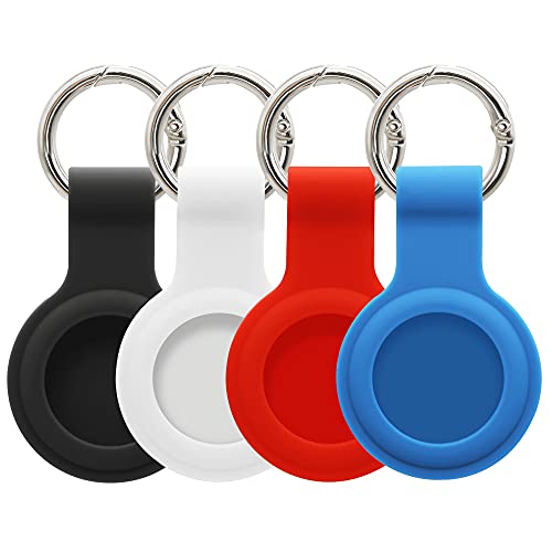 Riltoa - 4-Pack Airtag Silicone Key Case: Airtags Keychain Holder -Black AirTag Waterproof for Apple Air Tag Cover Protective Accessories for Dog Cat Pet Collar Luggage - 2021 Loop Cases Anti-Lost Keyring