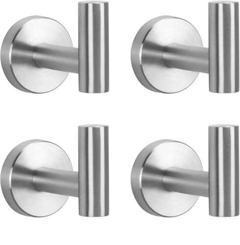 - 【SUS 304 Stainless Steel Durability】These 4-Pack Silver Coat Hooks are made of premium SUS 304 stainless steel, rust-proof even in humid bathrooms. Heavy-duty build holds up to 15 lbs, perfect for towels, coats, or bags—long-lasting for daily use.
