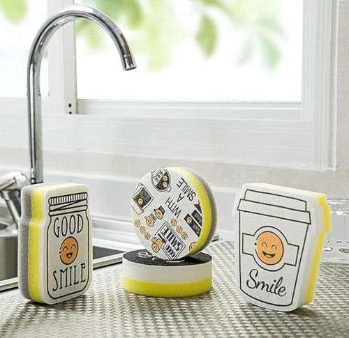 Generic. - 4-Pack Smiley Face Cleaning Sponges - Non-Scratch Scrub Sponges for Dishes, Countertops & Household Cleaning