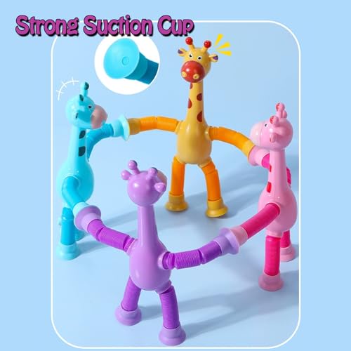 esycooying - 4 Pack Telescopic Suction Cup Giraffe Toy, Stretchy Giraffe SuctionAnimal Autism Sensory Toy for Toddlers, Travel Essential, Educational Classroom Treasure Box, Stretchy Giraffe Party Favors