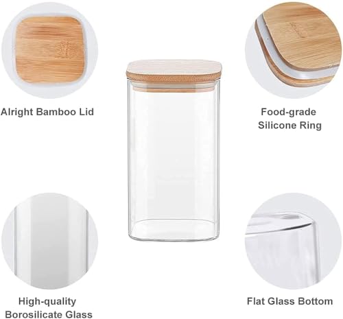 AREXOL - 4 Pcs 500ml 650ml 800ml 1000ml Clear Pyrex Glass Legume Spice Storage Container with Airtight Silicone Lids for Kitchen Tidying and Keeping Food Fresh