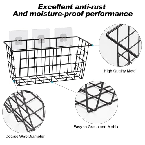 - 【سلال سلكية متينة يمكنها حمل 60 باوند】 هذه السلال مصنوعة من سلك ستيل متين مع طلاء متين مضاد للصدأ ومضاد للتآكل، بالإضافة إلى 3 ملصقات لا تترك علامات، والتي يمكنها حمل 60 باوند.