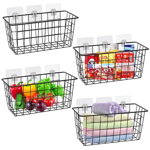 TGRPIOG - سلال مطبخ معلقة للتخزين من 4 قطع، سلال تخزين سلكية صغيرة متينة مع رف تخزين للمطبخ وخزانة الطعام والحمام بدون ثقب تثبت على الحائط