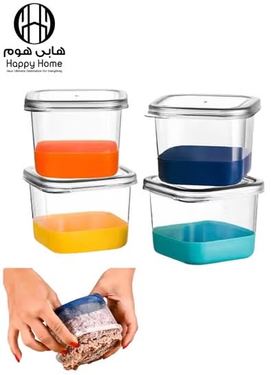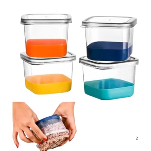 Generic - 4-Piece 60ML Push-Pop Silicone-Based Food Storage Container Set – Refrigerator & Deep Freezer Organizer – Versatile Kitchen Storage for Meals, Fruits, Vegetables, Meat, Beans, Snacks & Dry Foods – Pra