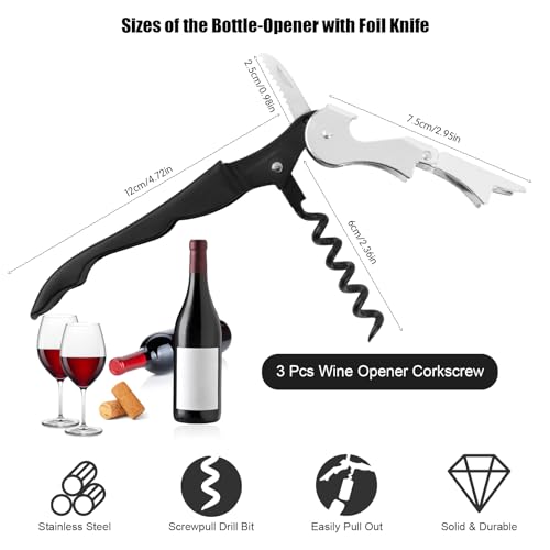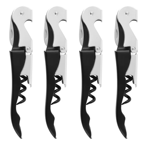 Yuechenggui - مجموعة فتاحة زجاجات مكونة من 4 قطع، فتاحة زجاجات وسكين نادل احترافي 3 في 1 مع قطاعة رقائق معدنية وفتاحة برافعة مزدوجة للسقاة والاستخدام المنزلي (أسود)