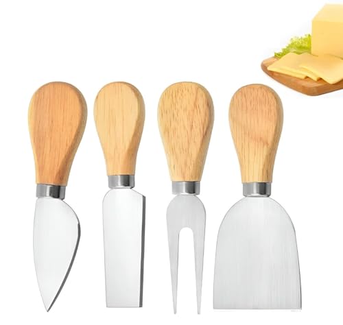 Generic - 4-piece cheese knife set with wooden handles and stainless steel blades, integrated tools for chopping and serving cheese and butter on a board