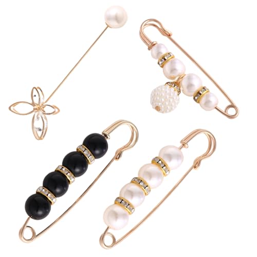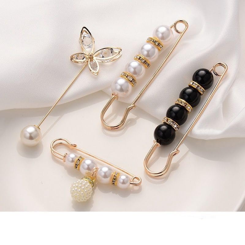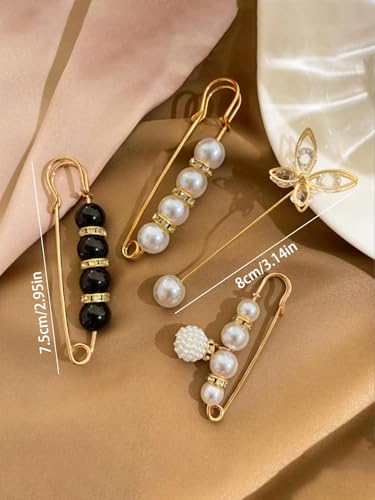 FRIDAYIN - 4-Piece Fancy Rhinestone Pearl Safety Pin Brooch Waist Buckle Pearl Butterfly Pins Brooch Sweater Shawl Crystal Clip for Women Girls Clothing Accessories