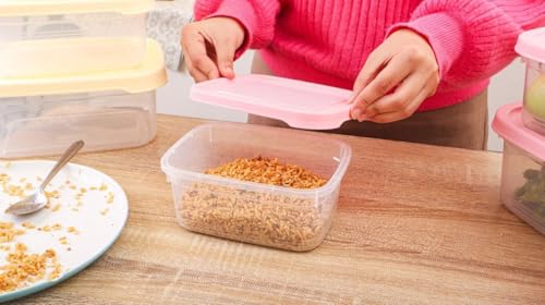 - ✅【أربعة أحجام مريحة】 تتضمن المجموعة علب بسعة 1 لتر و1.5 لتر و2.5 لتر و4 لتر مصممة بشكل مثالي لجميع أنواع التخزين، بدءًا من الوجبات الخفيفة الصغيرة والصلصات إلى الوجبات العائلية الكبيرة؛ استمتع بالمرونة والكفاءة في مطبخك مع تقليل النفايات والحفاظ على إدارة أجزاء الطعام بشكل جيد في كل مناسبة.🍱