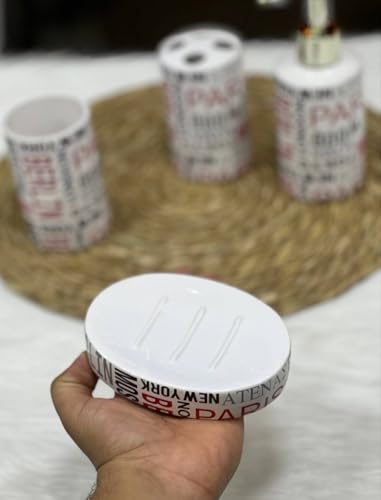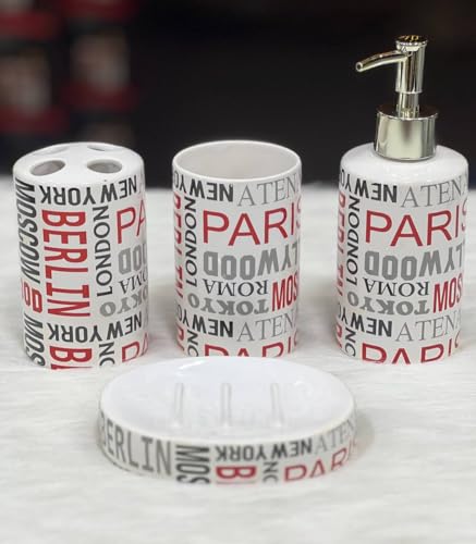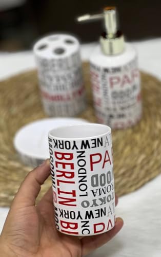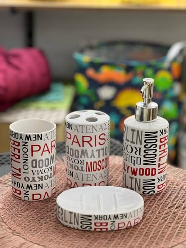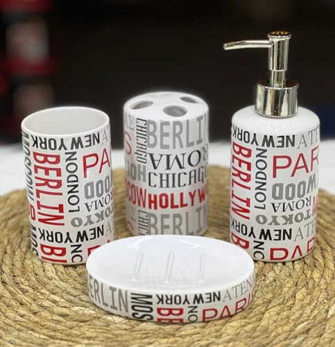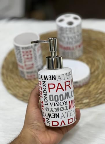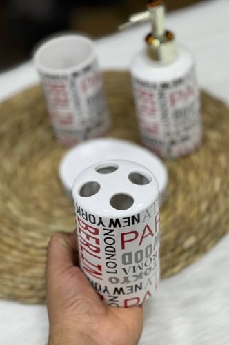 - COMPLETE 4 PIECE BATH SET: Includes Professional Pump Liquid Soap Dispenser, Toothbrush & Paste Holder, Hard Soap Holder, and Multi-Use Cup for Totally Stylish Organization of Your Bathroom