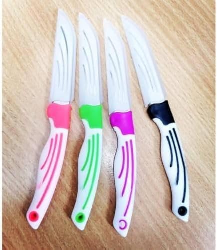 Generic - 4 Piece Sharp Kitchen Knife Set with Protective Plastic Covers, Multi Color Cutting Knives with Ergonomic Handle for Cutting Fruits and Vegetables, Safe and Easy to Use Kitchen Tools