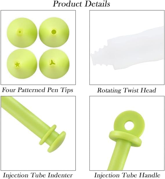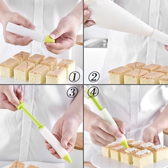 - 【4 Pieces Cake Decorating Pen Kit】You will receive 4 silicone cake icing pens in 4 different colors, green, blue, pink and red. So you can easily decorate cakes, pies, cookies, pastries and more!