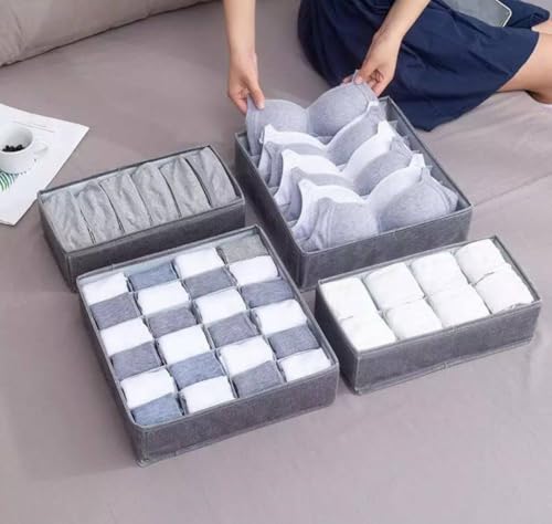 Generic - طقم منظم ملابس رباعي من الكتان - عملي ومثالي للسفر وتوفير المساحة، منظم شرابات وملابس داخلية مستورد 4 قطع