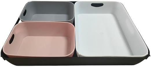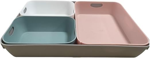 - Material: This drawer organizer bins are made of durable and high-quality plastic for keeping long lasting organization. Easy to clean, only need soap water or damp soapy sponge to clean up. The round corner would not hurt your hand.