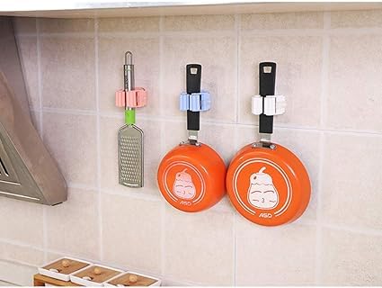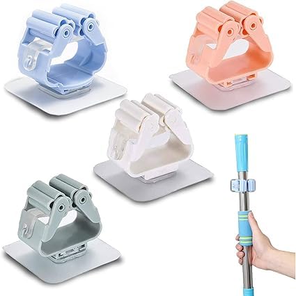 Generic - 4 Pieces Self Adhesive Broom Holder Organizer Wall Mounted Clips Holder for Kitchen Bathroom Closet Garden Garage Plastic Multicolor