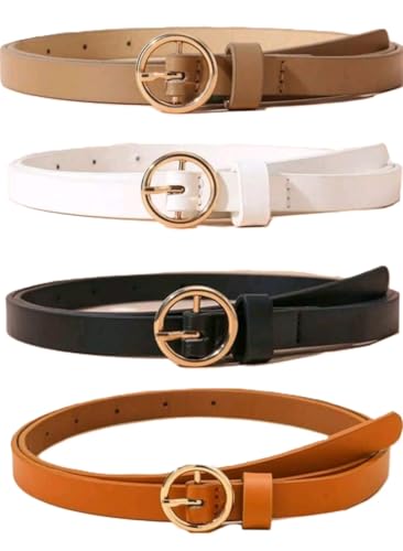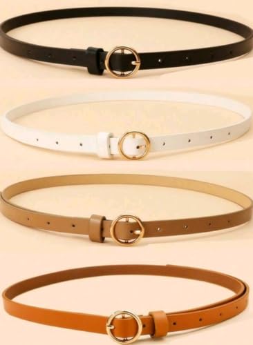 Generic - 4 Pieces Women Round Buckle Thin Belt Set Multicolor