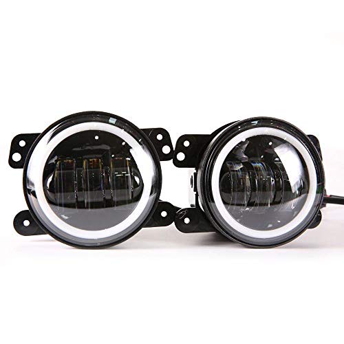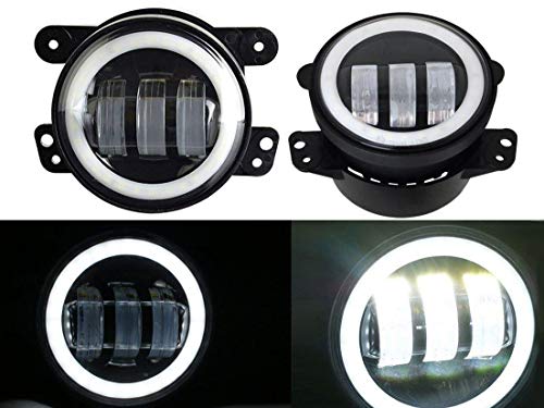 - 4" Round Led Fog Lights Offroad Lamps Front Bumper Lights White Halo Ring DRL for Jeep Wrangler JK JKU TJ LJ Rubicon Subaru Impreza Willys Grand Cherokees Dodge Magnum Unlimited Sport