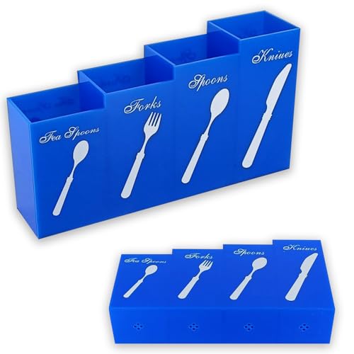 - Multi-function self-drain organizer, spoons, knives and forks Smart and modern multi-functional design for kitchen platforms, tabletops and kitchen sinks Cutlery rack holder with 4 compartments for dinnerware. With a drainage