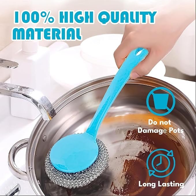 - What You Get: 1pc long handle + 4pcs Stainless Steel Sponge