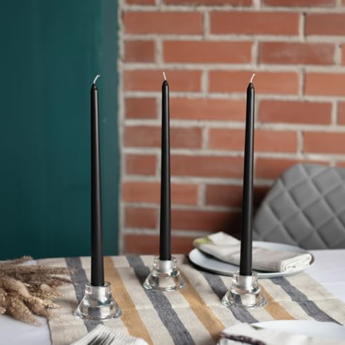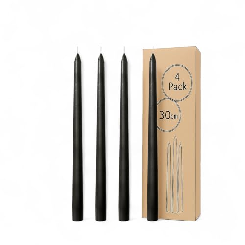 Generic - 4 Taper Candles – 14-Hour Burn Time Each – 35 cm Tall – Dripless – Smokeless – Fits All Candle Holders – Perfect for Home Décor | Total Weight: 340gm (Black, Medium, 30cm)