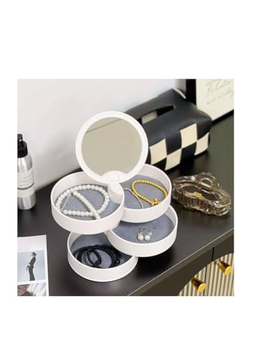 generic - منظم مستحضرات التجميل والاكسسوارات من 4 طبقات مع مراة - مادة نقية، تصميم عملي موفر للمساحة، مستورد ومعبأ في صندوق انيق M (ابيض)