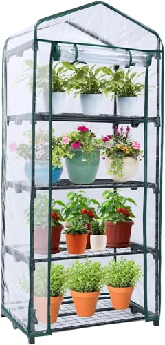- DIMENSIONS: Compact greenhouse measuring 70 cm x 46 cm x 162 cm, perfect for small gardens, patios, or balconies with 4 spacious shelving tiers