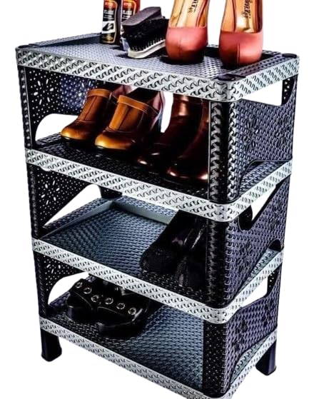 Generic - 4 Tier Shoe Organizer with Modern Design – Strong Quality Shock Resistant Material – Practical Shoe Organizer for Shoes and Bags – Easy to Install and Durable to Use (OM)