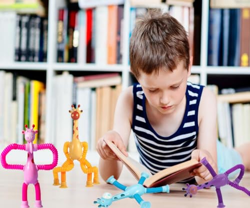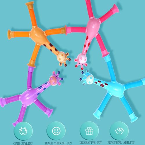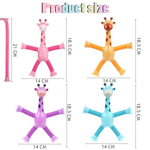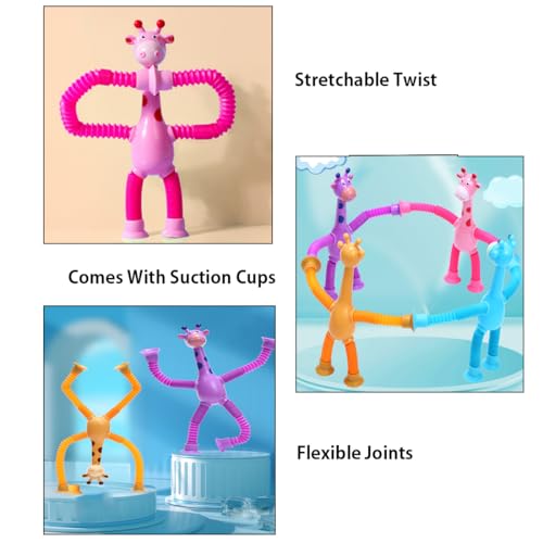 IUKUNNE - 4 x Sensory Giraffe Toys, Telescopic Giraffe Toy with Suction Cup, Educational Fun Stress Relief