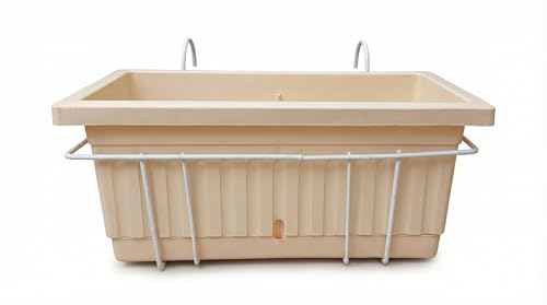 Generic - حوض زراعة مستطيل بألوان زاهية وخامات متينة ، مع حامل معدني للتعليق بالشرفة وطبق تجميع للمياه الذائدة (فانيلا لاتيه, 40سم*20سم*17سم)