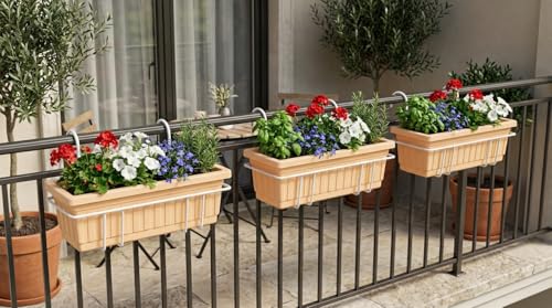 • تصميم متين: حوض زراعة مصنوع من مواد عالية الجودة مع حامل معدني قوي للتعليق على الشرفة والنوافذ