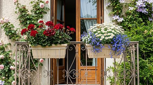 • سهولة التركيب: تصميم عملي مع حامل معدني مدمج يسهل تثبيته على أسوار الشرفات