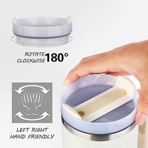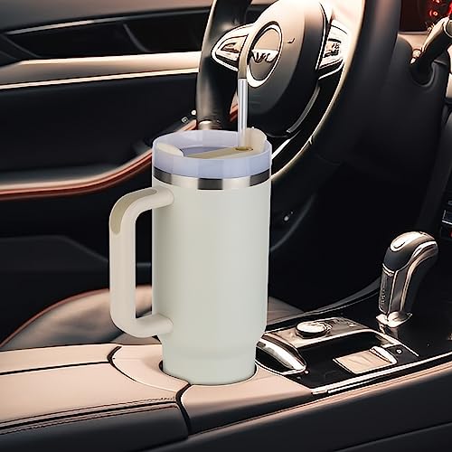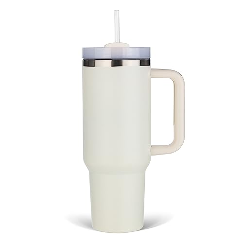 SCORATE - 40 oz Tumbler with Handle and Straw Lid Insulated Reusable Stainless Steel Water Bottle Travel Mug Iced Coffee Cup for Hot and Cold (Cream)