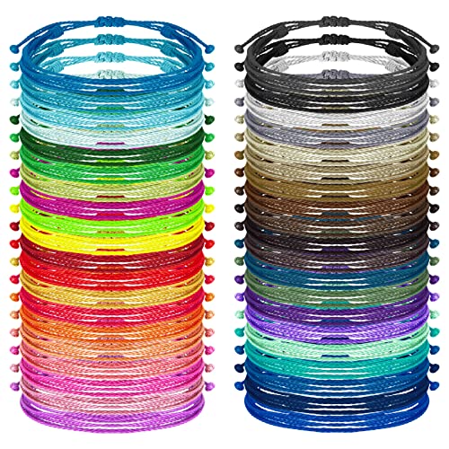 BBTO - 40 Pcs Adjustable String Bracelet Friendship Boho Surfer Wave Bracelets Handmade Aesthetic Bracelets Braided Yarn Bracelet Summer Beach Cord Bracelet Anklet for Women Girls Men, wax rope, wax rope