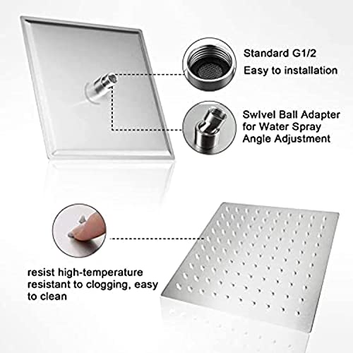 - 1- رأس دش المطر كبير: رأس دش المطر من رقيق للغاية وحديث، رأس دش مربع كبير 30.48 سم مع تغطية كاملة للجسم، احصل على تدليك مائي ديناميكي للجسم بالكامل
