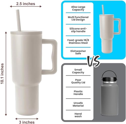 - 【Perfect Gift for Your Family and Friends】: If you are looking for the perfect birthday or holiday gift, don't miss this 40 oz tumbler with handle. This coffee mug is the best gift for mother, father, teacher,doctor,driver who need to drink amout water or not convient to refill.It is also a great chooice for mother's day father's day, Christmas, Thanksgiving Day, Easter and so on.