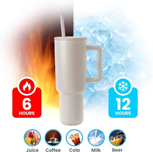 - 【Water Cup All Day Insulation】: The 40 oz tumbler with handle and straw features triple layer, double wall vacuum insulation technology, keeping your drinks at the perfect temperature, all day long. water cup Cold for up to 24 hours, and hot up to 12 hours. Whether you're at the office, on the road, or on a camping trip, and traveling,this durable tumbler is designed to keep your coffee hot Drinks or your water ice-cold all day long.
