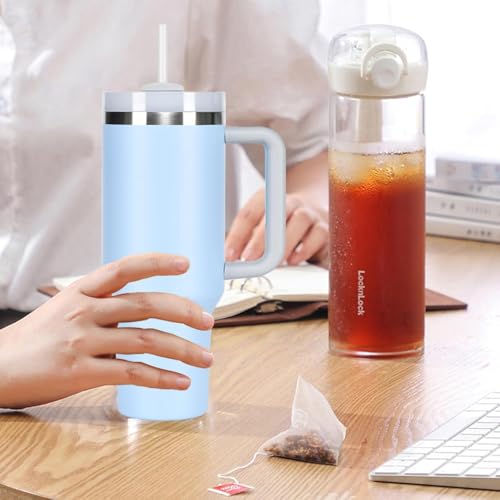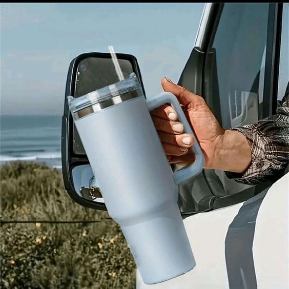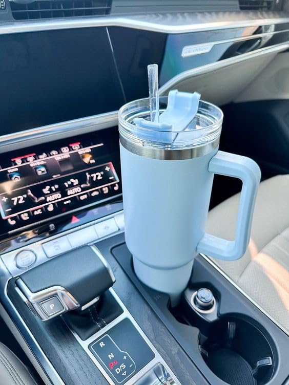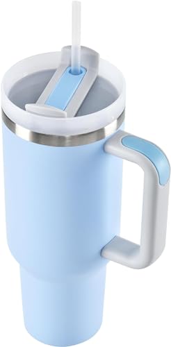 4BUY - 40oz Tumbler with Handle, Straw, Lid, Stainless Steel Vacuum Insulated Water Bottle Adventure Travel Mug Quencher for Iced Coffee, Hot or Cold Tea and Beverage, Sky Blue