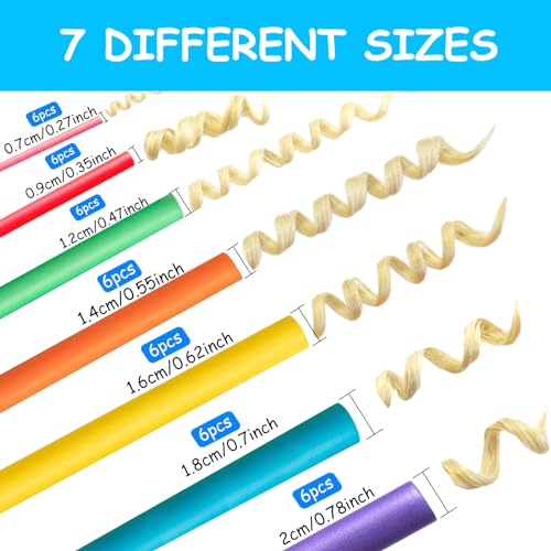 - عبوة من 42 قطعة: قضبان تجعيد شعر مرنة مقاس 17.8 سم بـ 7 ألوان، 6 قطع من كل لون، بعدد إجمالي 42 قطعة. متوفرة بمقاسات متعددة الألوان لعمل تجعيدات وتموجات بأحجام وأنماط مختلفة. تمويج الشعر بشكل حلزوني للبنات والنساء والأطفال.