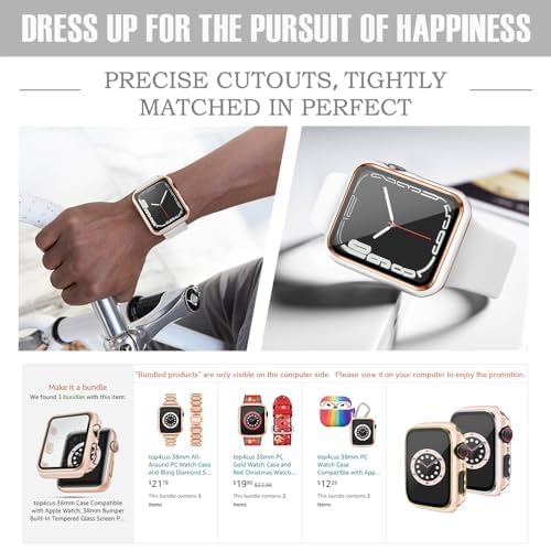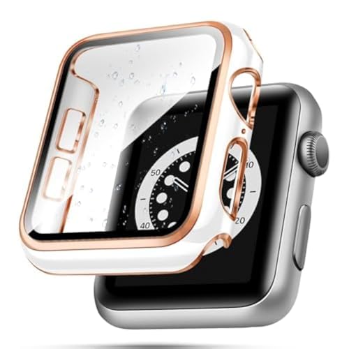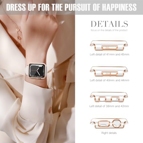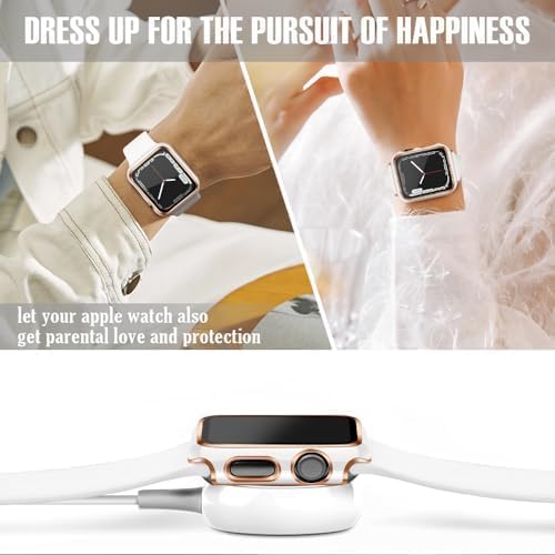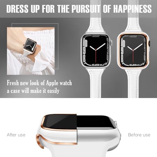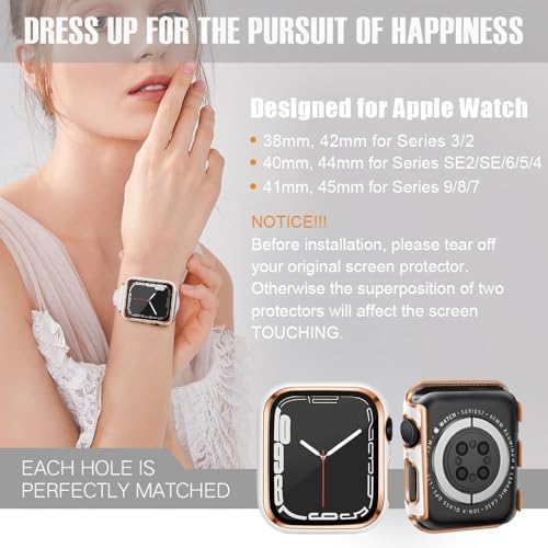 ELMO3EZZ - 45mm Case Compatible with Apple Watch, with Built-in Tempered Glass Screen Protector, PC Cover for iWatch Series 8/7/SE 6 5 4/3 2 for Choice (45mm, White + Rose Gold Edge)