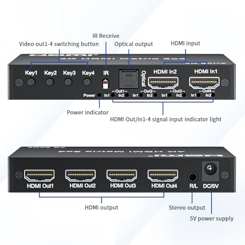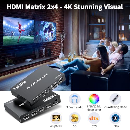 LUKFOCAB - محول تبديل اتش دي ام اي مصفوفي 4K 2×4، مفتاح وموزع فيديو 2.0 مصفوفي اتش دي ام اي 2 مدخل × 4 مخرج، مخرج صوت بصري 3.5 ملم، يدعم دقة 4K بمعدل 60 هرتز، وتقنية النطاق الديناميكي العالي (HDR)، ومعيار