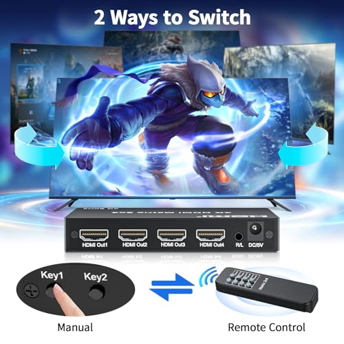 - 2×4 محول تبديل مصفوفي اتش دي ام اي: يمكنه التبديل بين جهازي إدخال للإشارة وتوزيعها على 4 شاشات، حيث يمكنك اختيار أي مصدر فيديو متصل وإرساله إلى الشاشة المطلوبة. مثالي للمسرح المنزلي أو المكتب أو المدرسة أو غرفة المؤتمرات أو مراكز التسوق أو الفندق أو المتاحف.