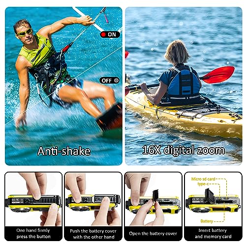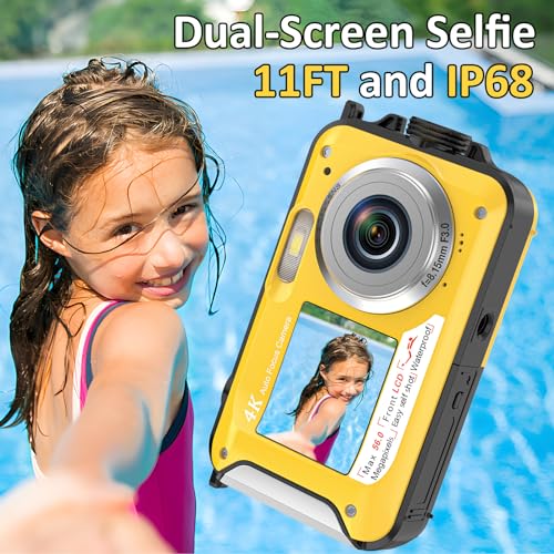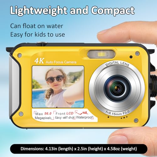 NALACAL - 4K Underwater Camera, 11FT Waterproof Camera with 32GB Card, 48MP Autofocus Camera Dual-Screen Selfie Camera Compact Floatable Camera for Snorkeling Waterproof Compact Floatable Digital Camera