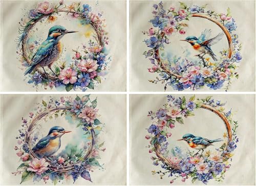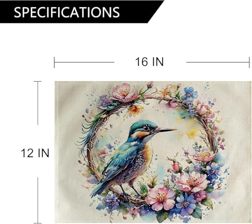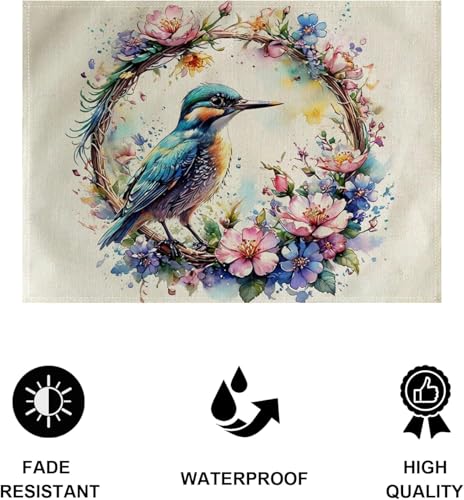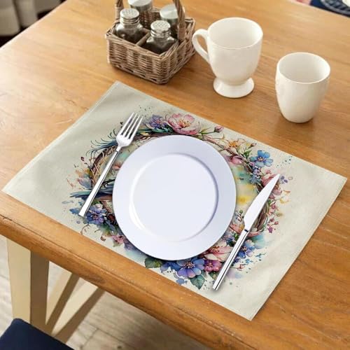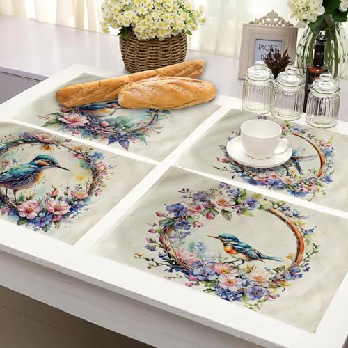 Generic - 4Pack Watercolor Birds Table Mats Purpule Spring Wreath with Birds Placemats Waterproof Heat Resistant Washable Non-Slip Place Mats for Dinner Room Kitchen Decor Table 12”×16”(Purpule, 12”×16”)
